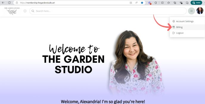1. Log into your profile, click on your picture on the top right and select "Billing" from the dropdown menu.