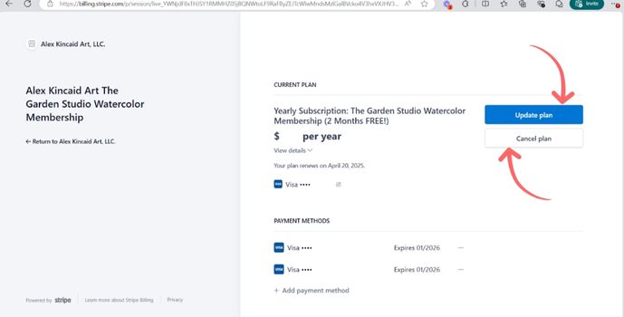 If you're unable to cancel on your own, we're happy to assist! Simply reach out to our support team at support@alexkincaidart.com at least three business days before your renewal date, and we'll take care of the cancellation for you to ensure no further charges are applied.